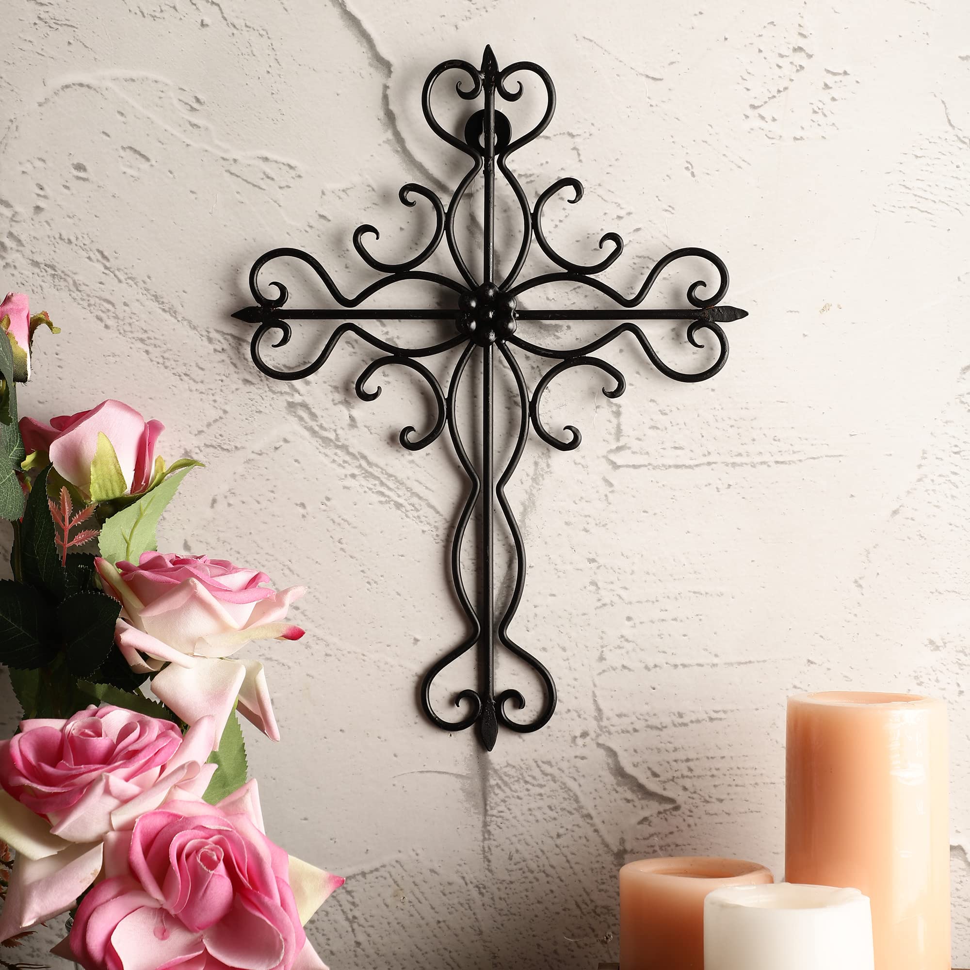 Amazon Com Rely Large Decorative Hanging Wall Cross Black 14 X 10 Inches Heart Decorative Metal Wall Cross Religious Wall Art For Wall Decor Home Decor Living Room Decor